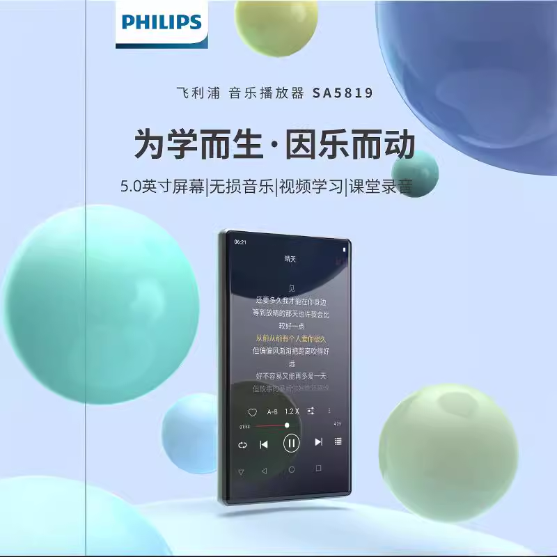 飞利浦SA5819MP4播放器wifi蓝牙MP5学生MP3随身听小说视频音乐