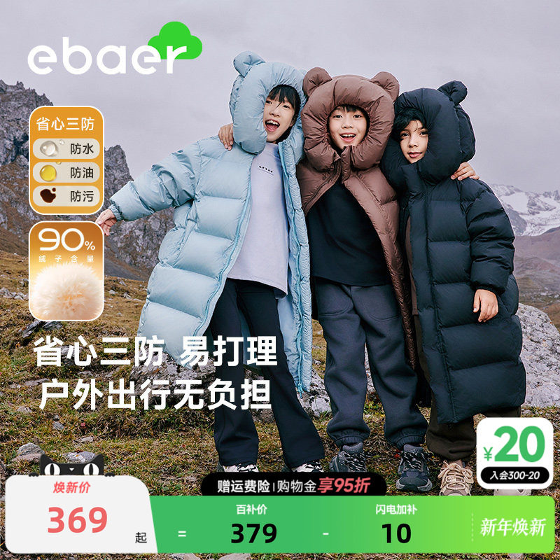 男童女童90白鸭绒冬装 新款 保暖外套 加厚冬季 EBAER儿童羽绒服长款