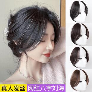 八字刘海假发片2024全真发遮前额中分假刘海发夹式 自然胎毛假头帘