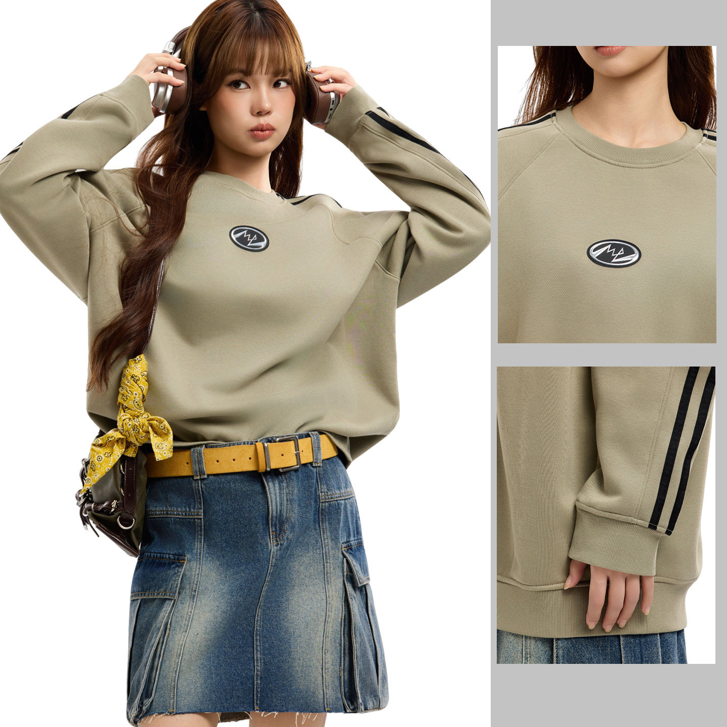 男春季 圆领美式 款 男女同款 潮流上衣 新款 美特斯邦威摇粒绒卫衣美式