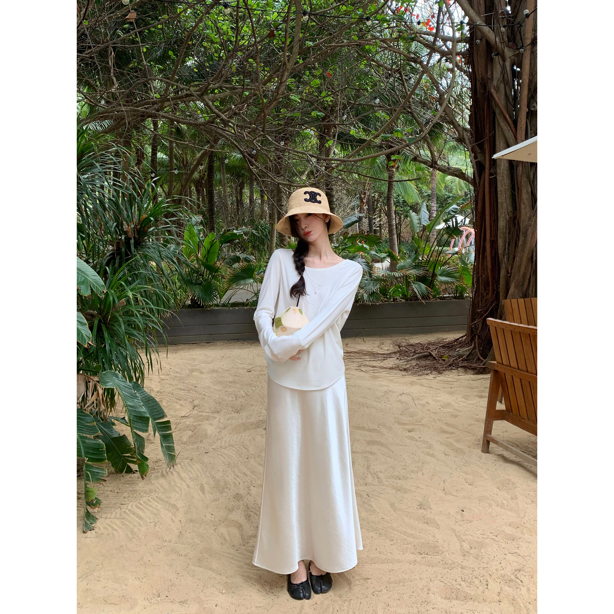 pusumede 高腰半身裙女高级感缎面a字裙气质垂感裙子 仿醋酸法式