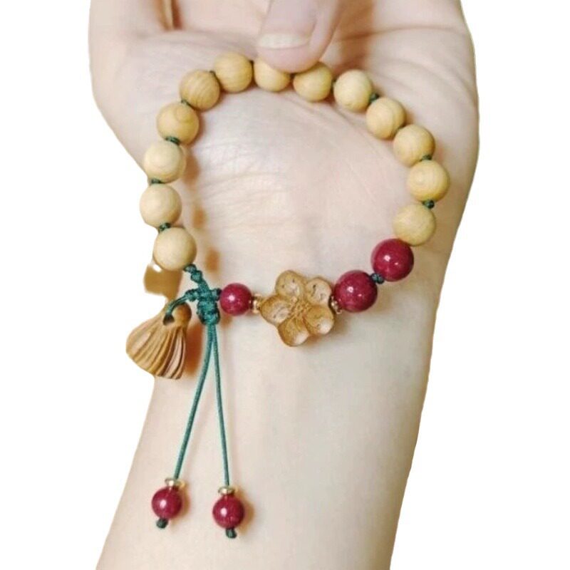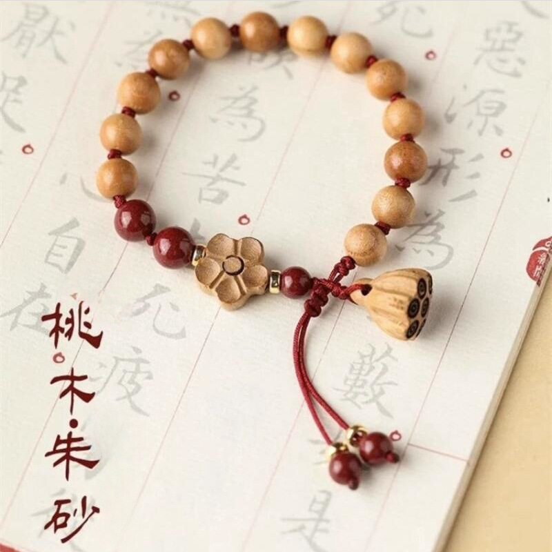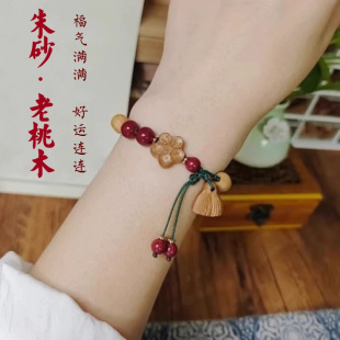 新款 老桃木手链女真桃木朱砂手串本命年编织红绳宝宝防惊吓佛珠