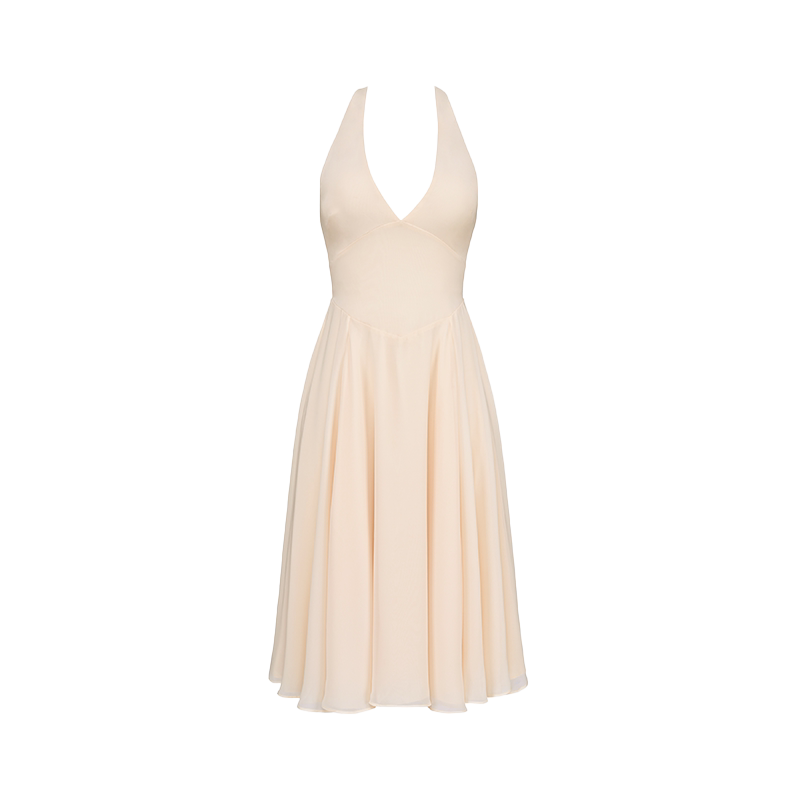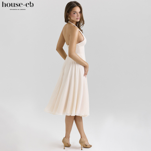 House CB浪漫奢华复古奶油白雪纺挂脖太阳裙Solada