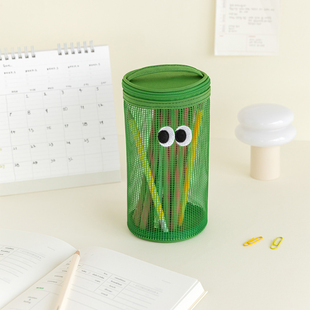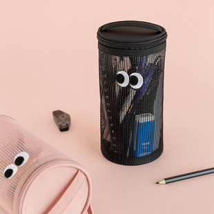 韩国简约笔袋女透明网纱网格考试铅笔袋男大容量文具袋收纳文件袋