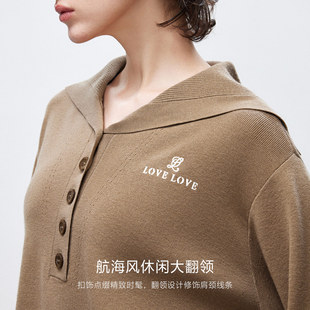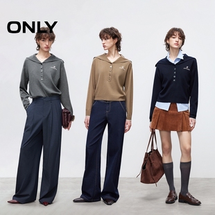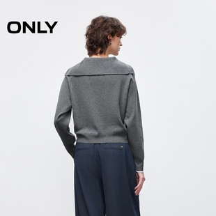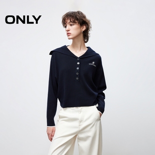 针织衫 航海风半开襟大翻领精致刺绣落肩长袖 女 新款 ONLY2026春季