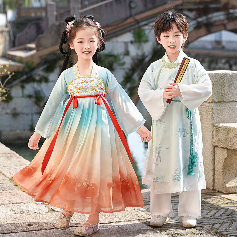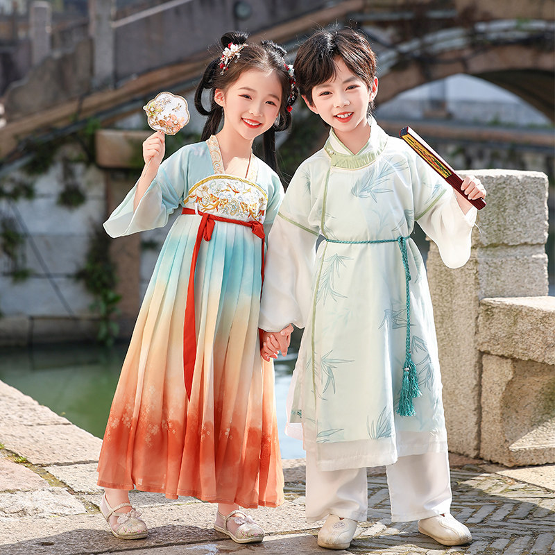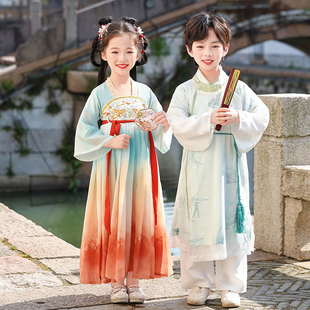 儿童国学演出服夏季 古风汉服女童2026新款 超仙连衣裙男童帅气古装