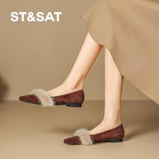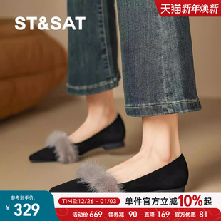 配裙子女单鞋 星期六尖头浅口单鞋 外穿不累脚时尚 舒适平底鞋 25新款