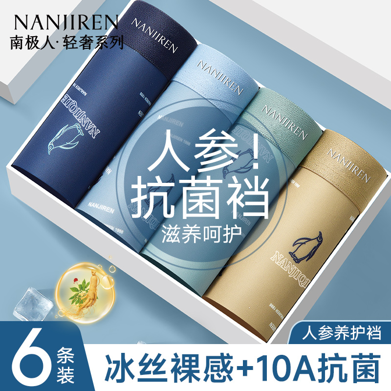 男士 2025新款 冰丝男生四角平角短裤 男款 头纯棉裆夏薄款 南极人内裤