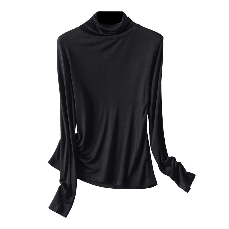 真丝高领打底衫 T恤上衣冬季 女 女士长袖 桑蚕丝针织显瘦大码 秋冬款