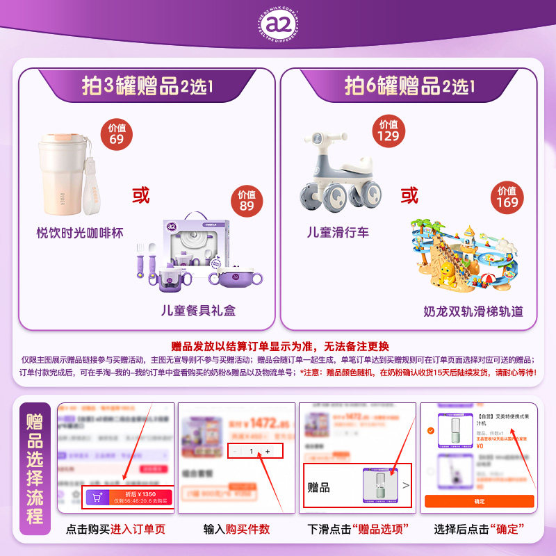 自营 6个月宝宝 a2新升级紫白金版 900g 婴幼儿牛奶粉1段
