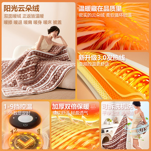 彩阳电热暖身毯定时盖毯办公室午休可水洗暖腿云朵绒加发热披肩毯