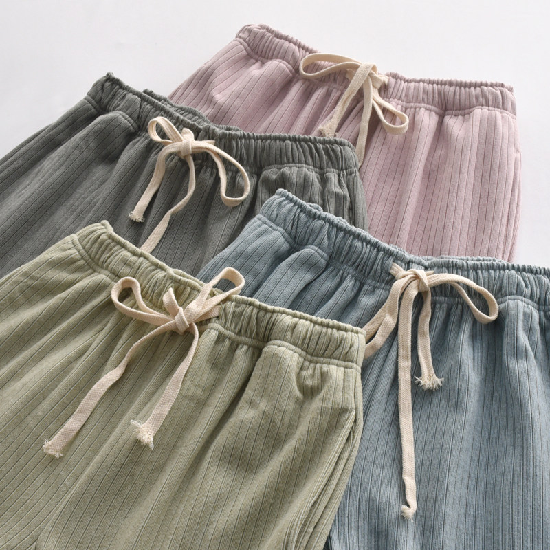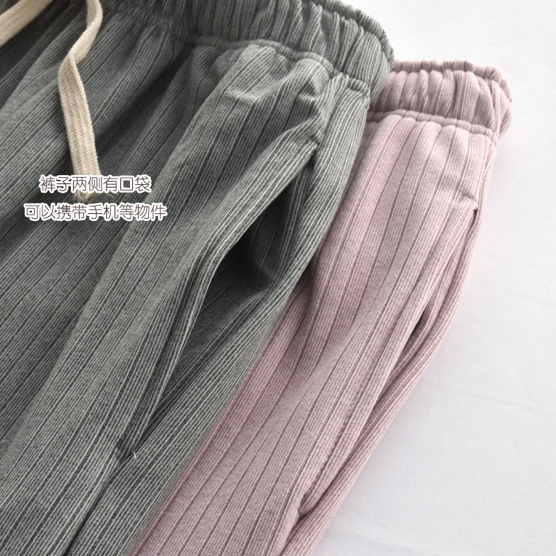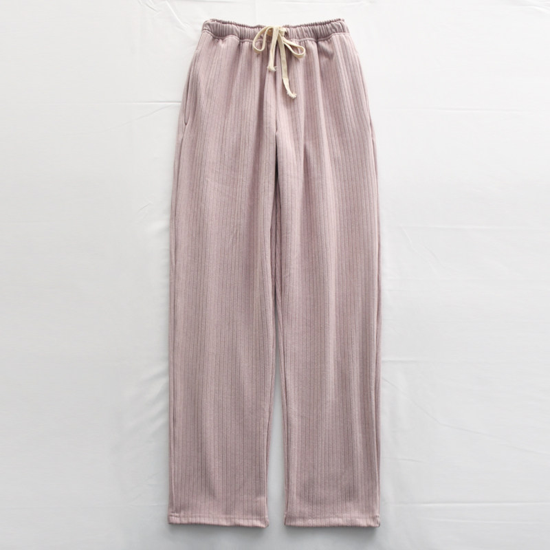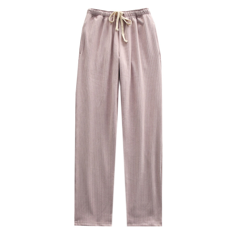 长裤 保暖可外穿情侣家居裤 男女秋冬季 日系坑条舒绒双面磨毛睡裤