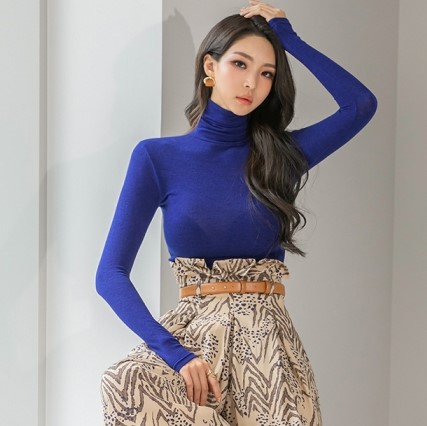 女内搭长袖 高领打底衫 T恤 dint春秋衣纯色日常柔软修身 韩国代购