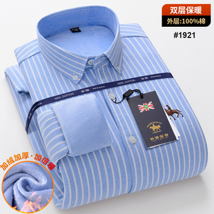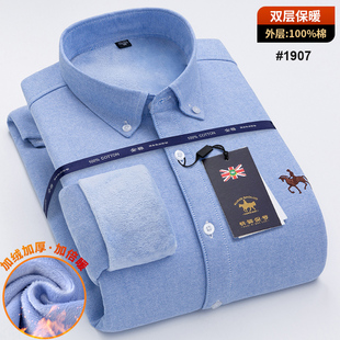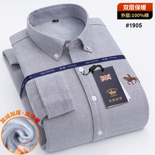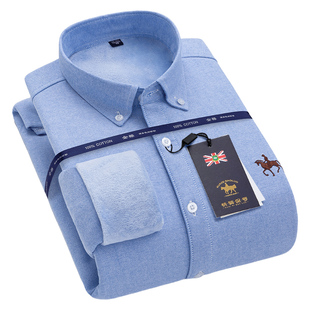 衬衣 中青年纯色全棉加绒加厚大码 保罗100%纯棉男士 牛津纺保暖衬衫