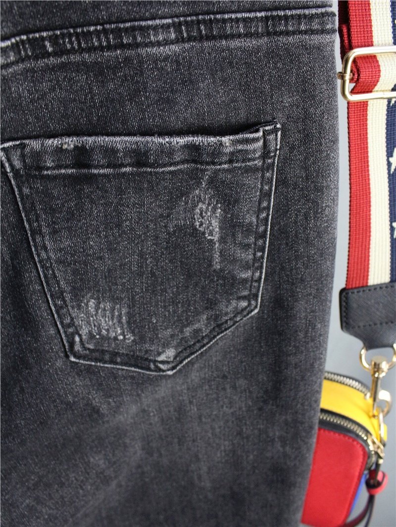 显瘦长裤 歌莉娅黑色抓绒牛仔裤 靴裤 高腰紧身小脚裤 女秋冬2025新款