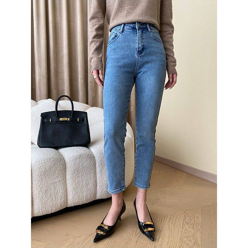 女 THESOONG 直筒牛仔裤 手擦猫须中高腰显瘦拉链新款 6345 C家经典