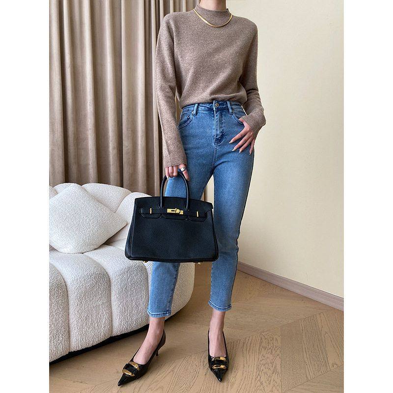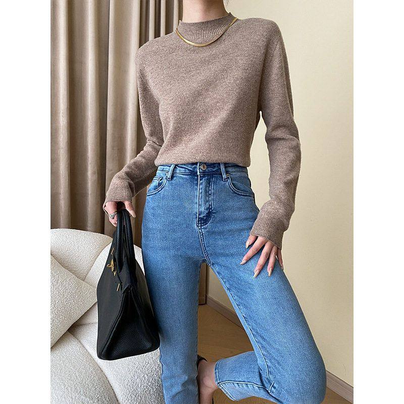 百搭遮肉加绒加厚女士长裤 保暖羊羔绒牛仔阔腿裤 时尚 冬季 2025新款