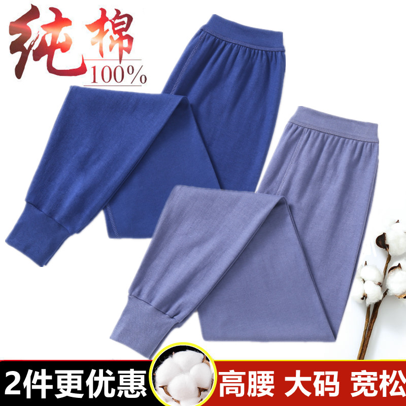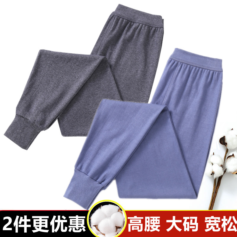 秋裤 加肥棉毛秋裤 100%纯棉大码 中老年保暖线裤 男 全棉高腰衬裤 男士