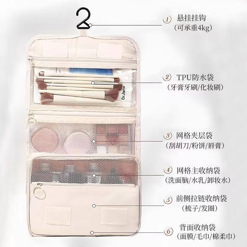 网红简约便携出差旅行化妆包便携外出防水悬挂干湿分离挂钩洗漱包