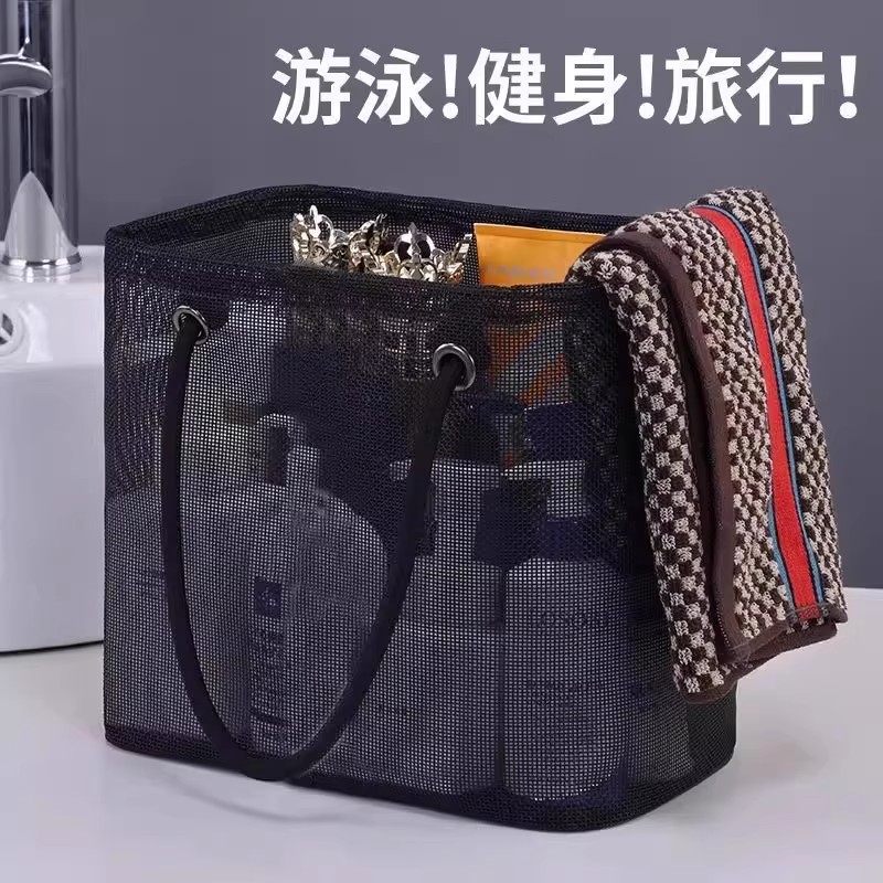 便携洗漱包旅行游泳化妆包手提出差防水网眼洗澡健身沙滩包收纳袋