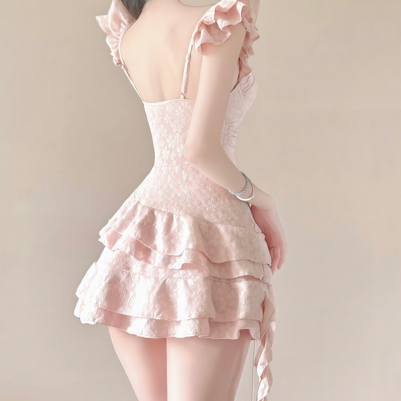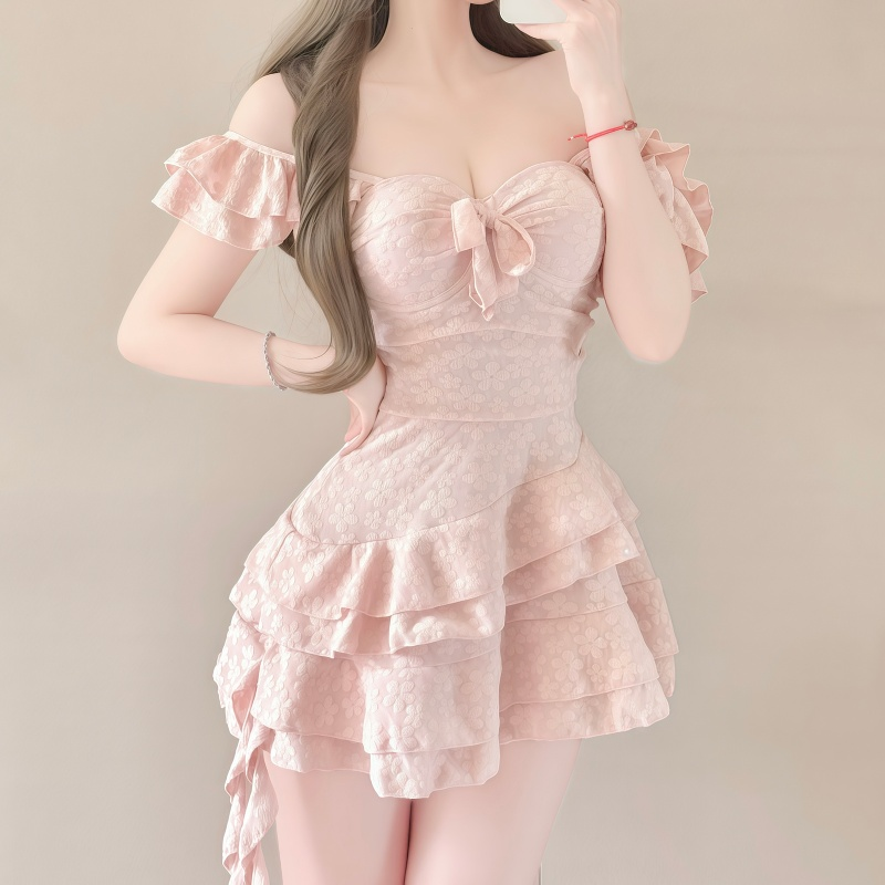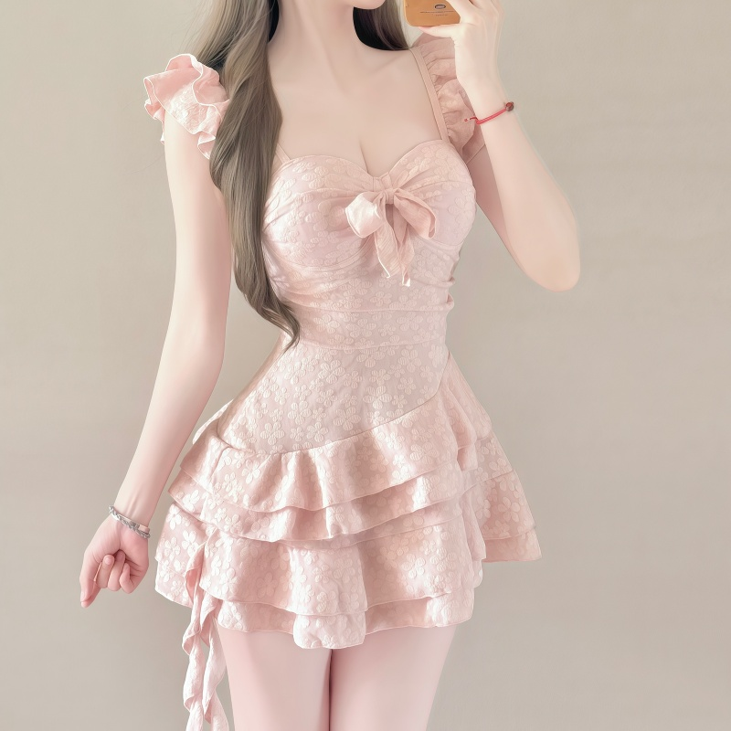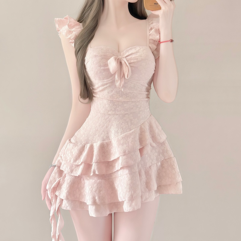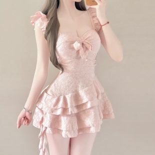 泳衣女款 遮肚显瘦性感吊带纯欲风海边度假泡温泉 甜美少女连体裙式
