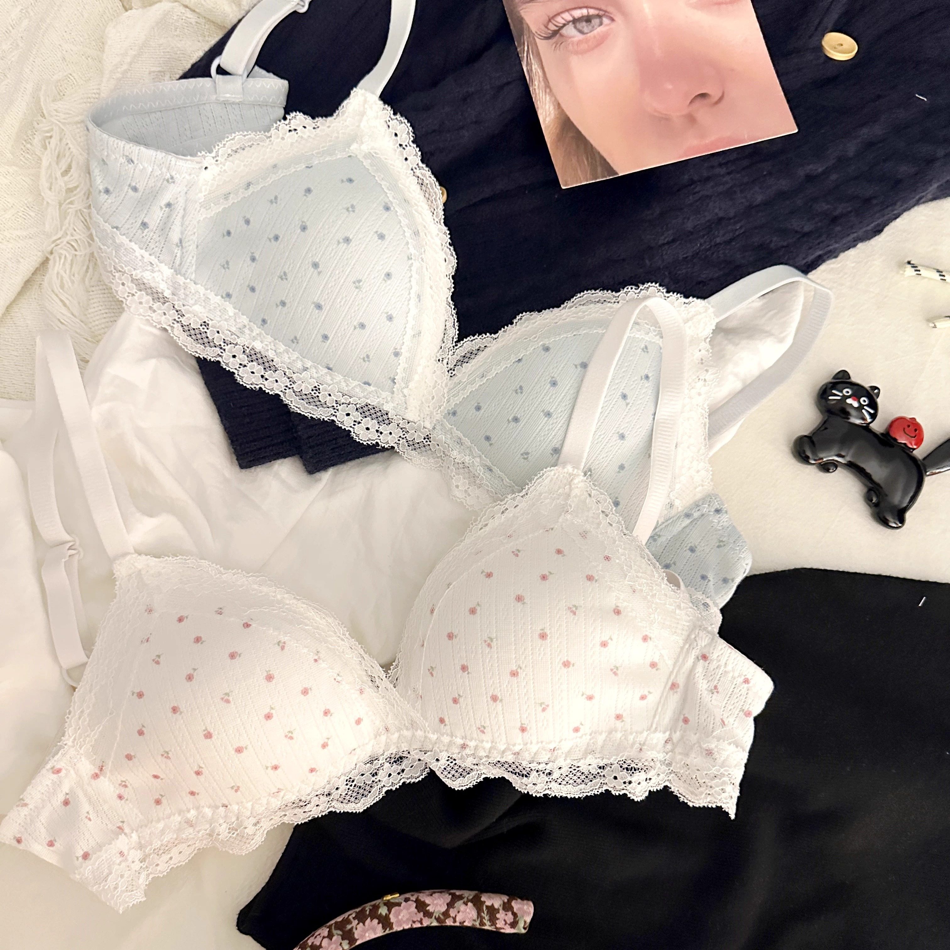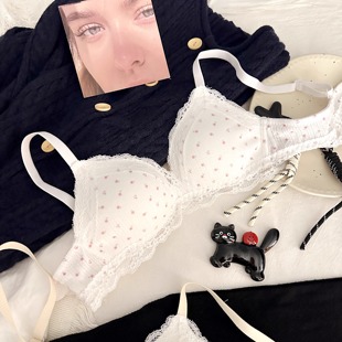 聚拢显小胸无钢圈防下垂文胸罩套装 内衣女薄款 碎花蕾丝边新款 法式