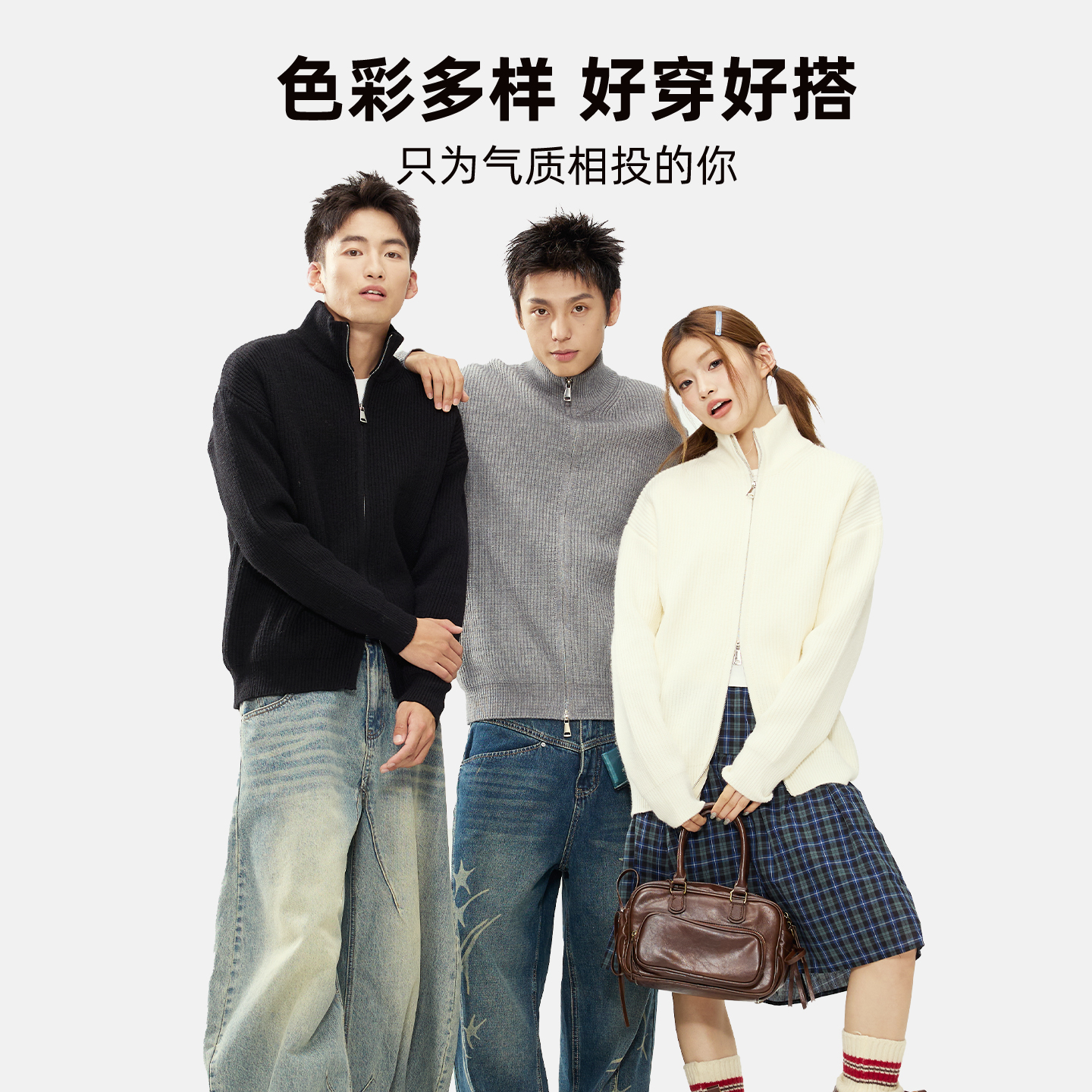 毛衣男款 内搭针织衫 秋冬季 男士 立领拉链外套PC 新款 雪中飞灰色开衫