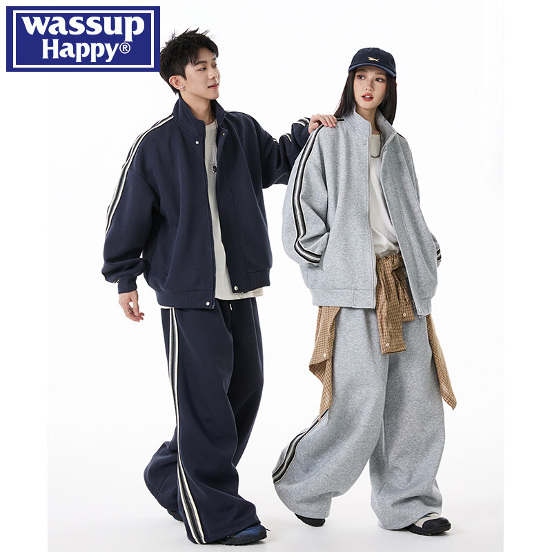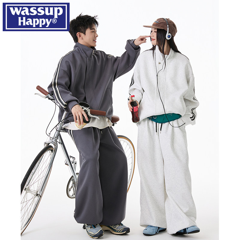 休闲运动帅气两件套装 wassup 新款 卫衣外套男秋季 潮 happy潮牌美式