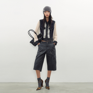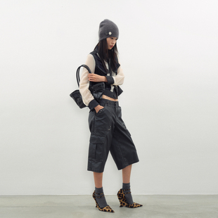 休闲松弛运动裤 女灰色修身 子 黑色微喇直筒低腰卫裤 asomesome美式
