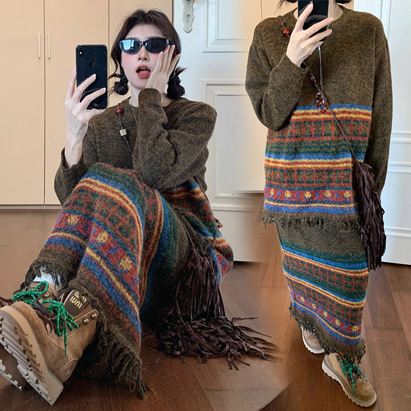 套装 设计慵懒风孕妈穿搭两件套裙子秋冬季 连衣裙2025新款 孕妇秋装