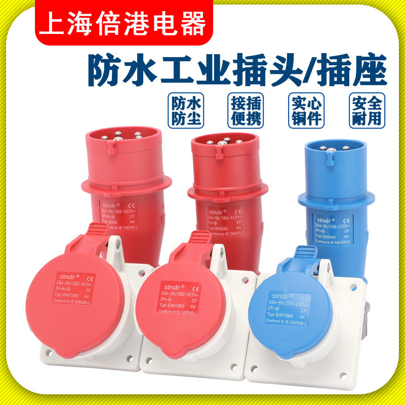 航空插座380v工业插头插座16a3孔工业插座32A5孔直座暗装 防水插座