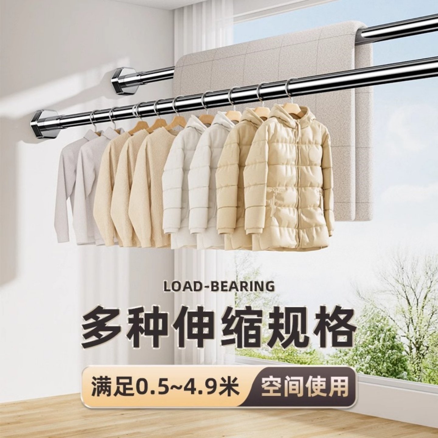 免打孔伸缩晾衣杆窗帘衣柜撑杆阳台晒衣杆飘窗晾衣架晒被晾衣神器
