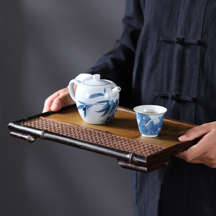 天然岩石茶盘紫竹石材茶台手工竹编干泡台茶台壶承托盘茶具收纳盘