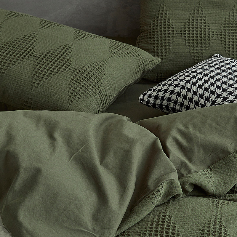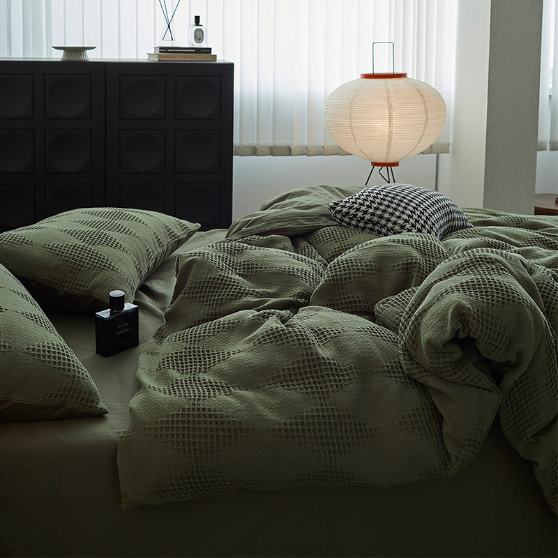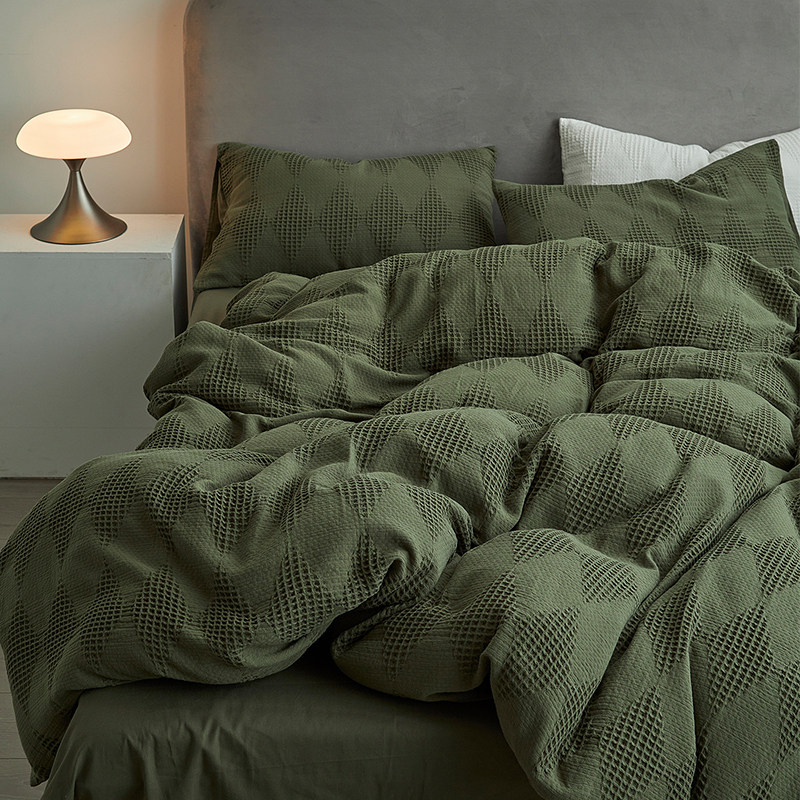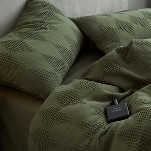 轻奢高级感华夫格纯棉四件套60支全棉床单被套美式 床品 轻奢夏季