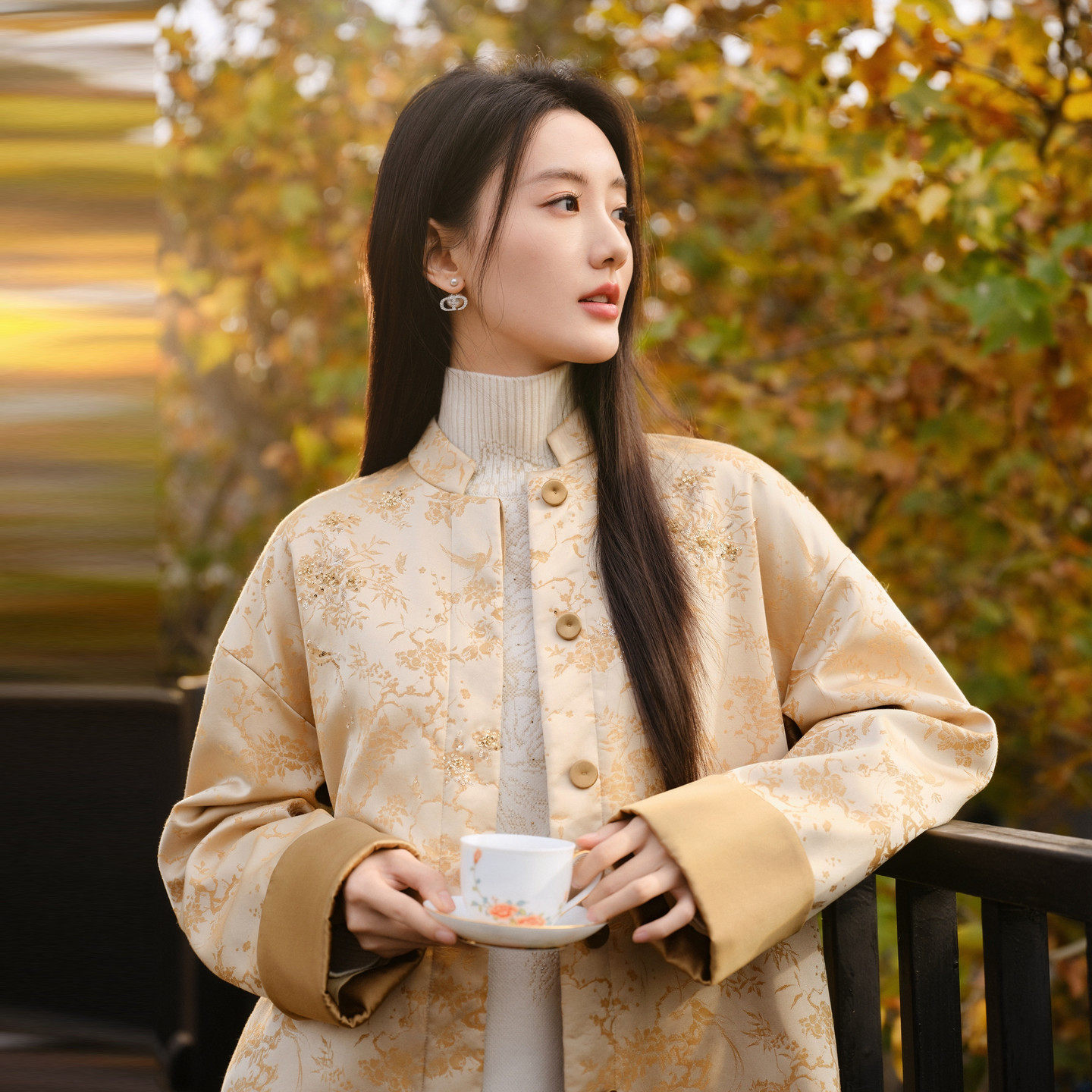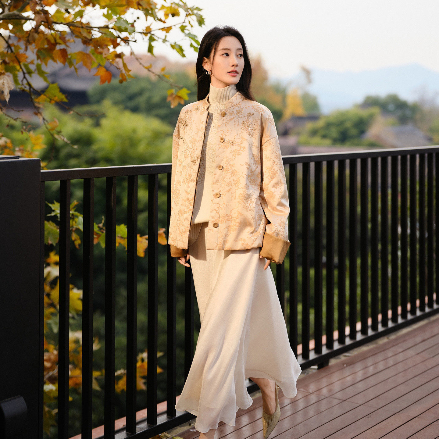 M111A 2025早秋新款 EP雅莹蓝标系列 高智感国风立领重磅提花外套