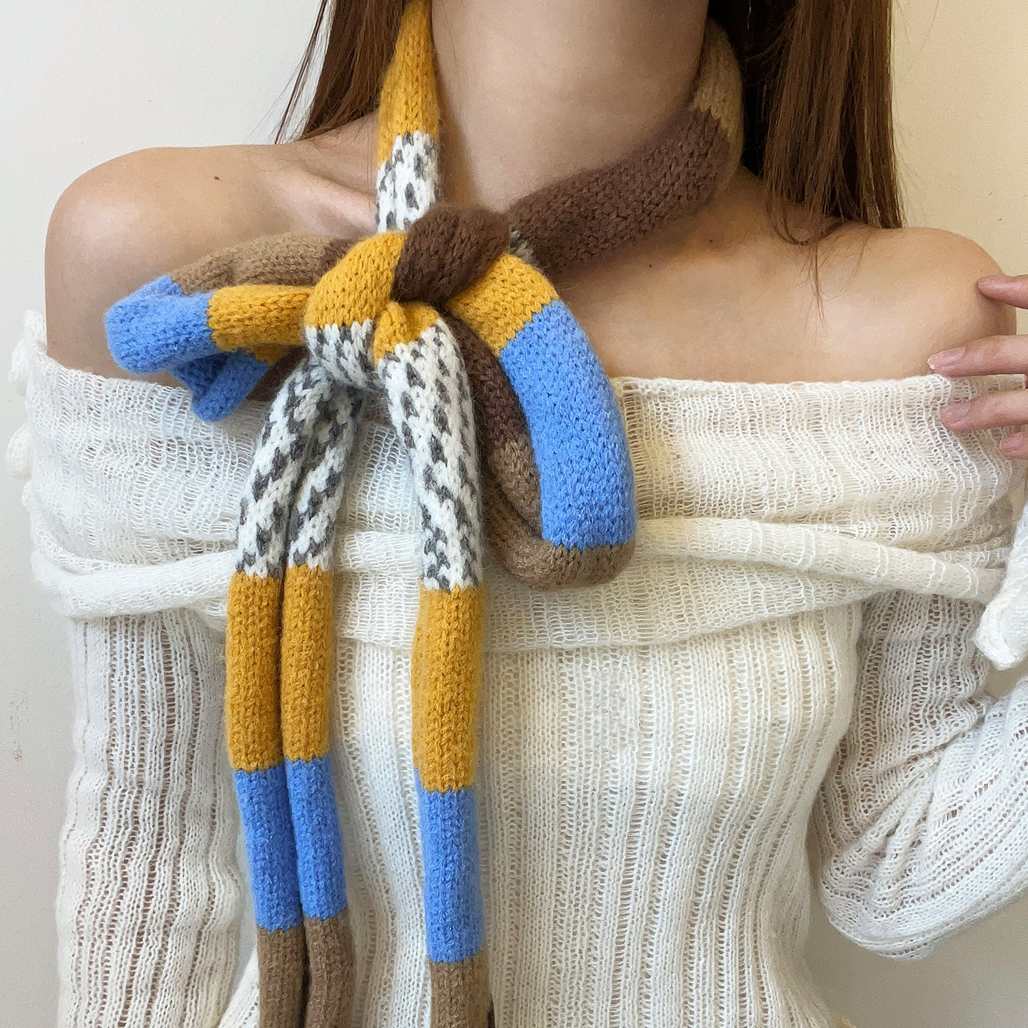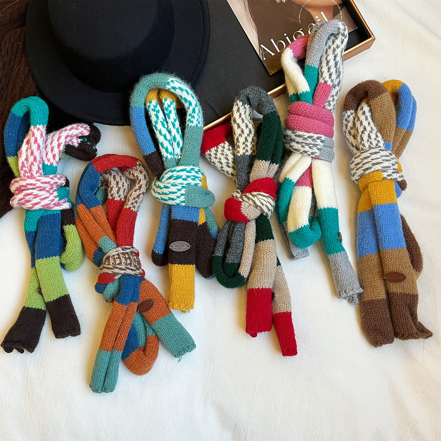 饰细条 装 日系古着款 敲可爱腊肠小围巾卷卷毛线围脖学生少女秋冬季