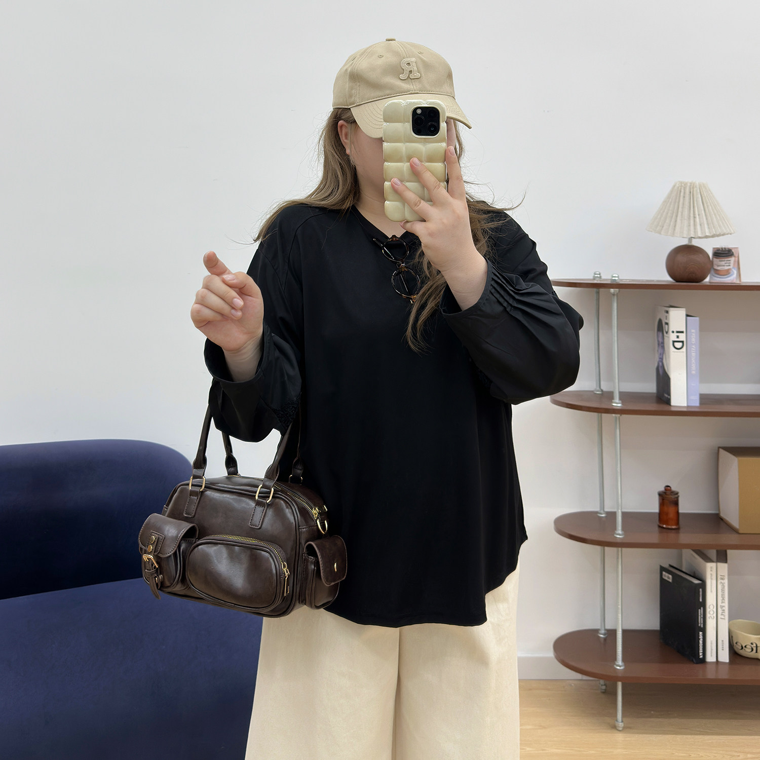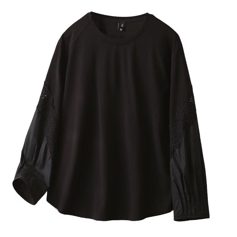 胖mm显瘦宽松慵懒风简约温柔上衣 T恤女秋季 宛宛大码 蕾丝拼接长袖