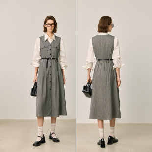 收腰V领气质通勤马甲式 格雷系复古无袖 连衣裙 女装 LILY2025冬新款