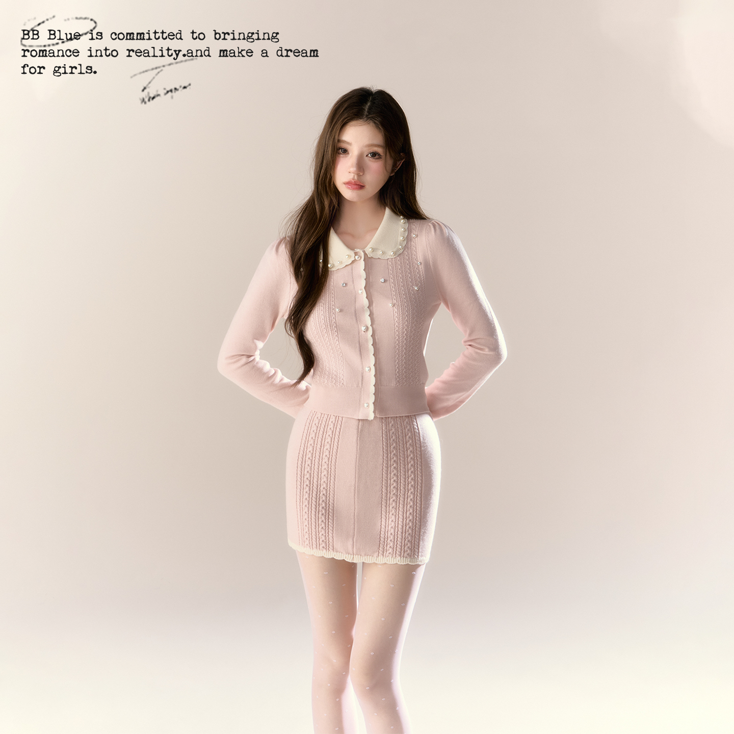 秋日ootd穿搭高级感巨好看精致羊毛针织套装 灰屿之樱 女 BLUE