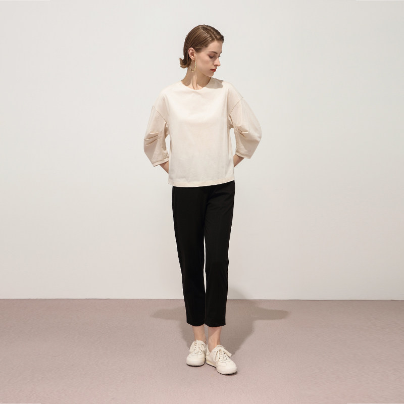 黑色长裤 Keywearcloud奇威秋日常通勤舒适休闲分割结构修身 烟管裤