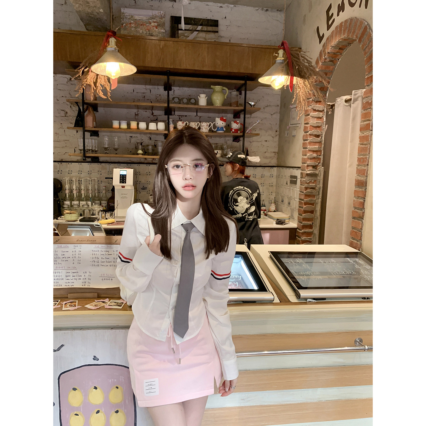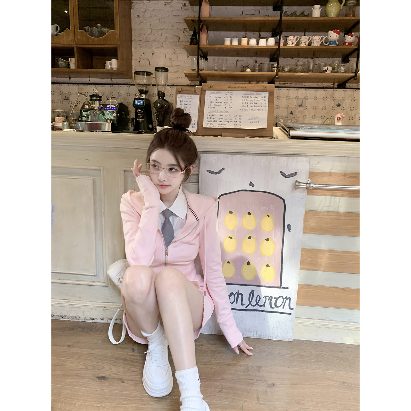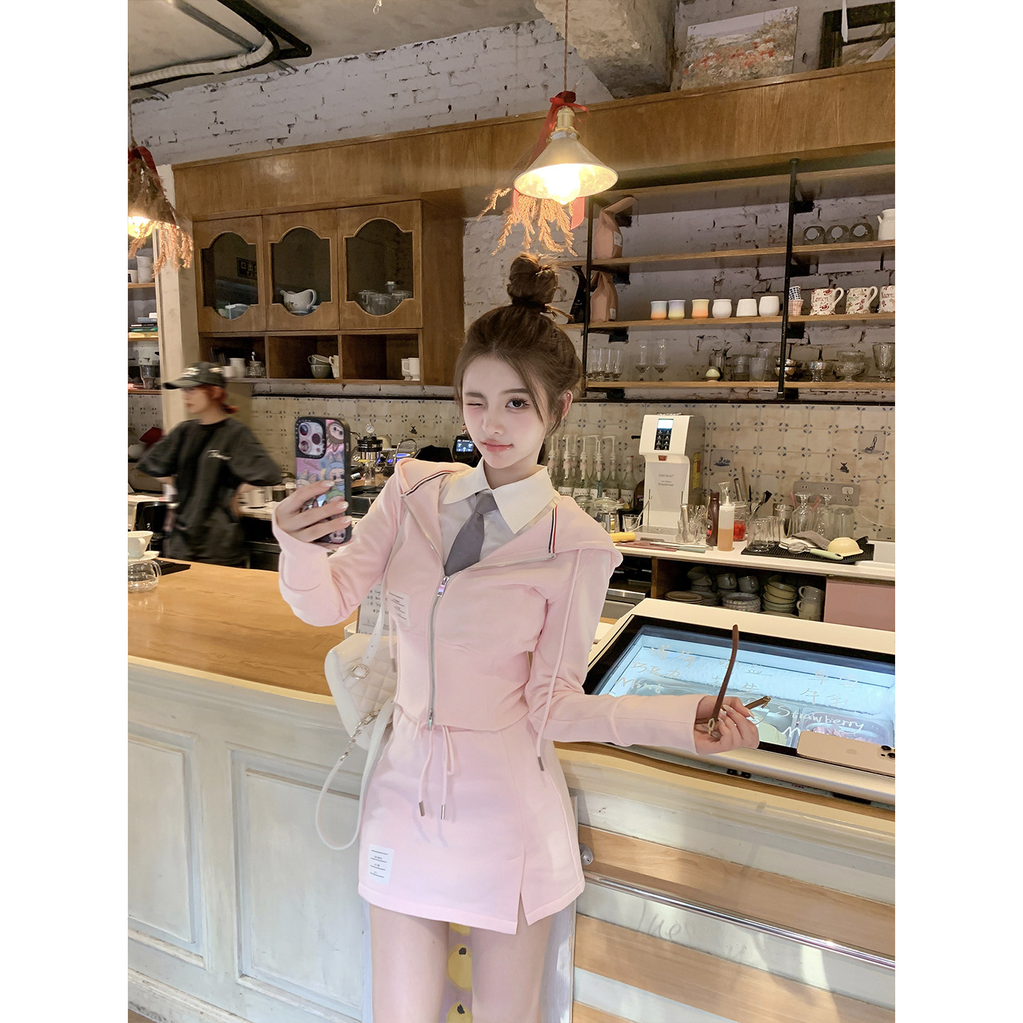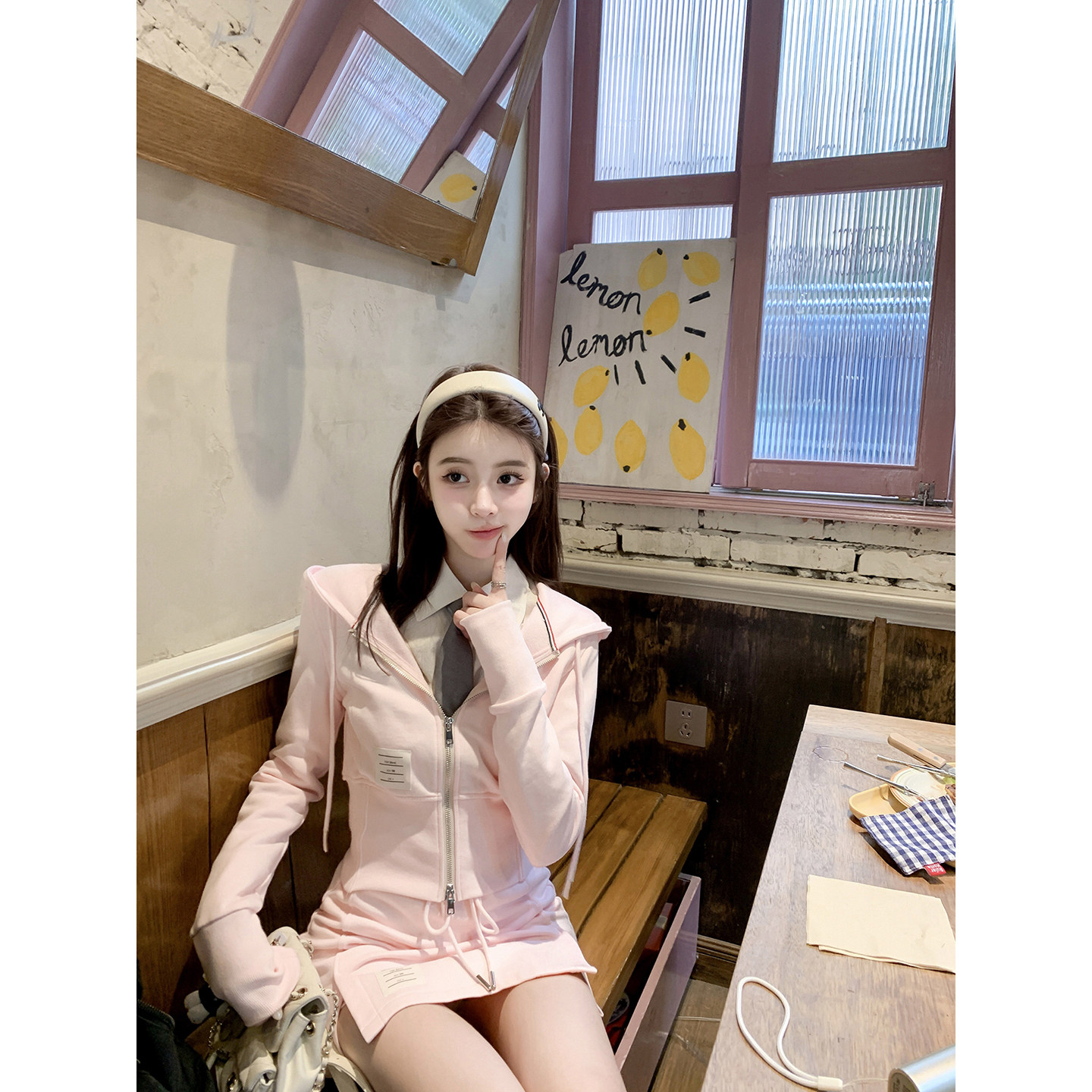 清潭艺高 秋冬款 tb定染甜粉连帽卫衣开衫 半裙套装 上衣 若语定制