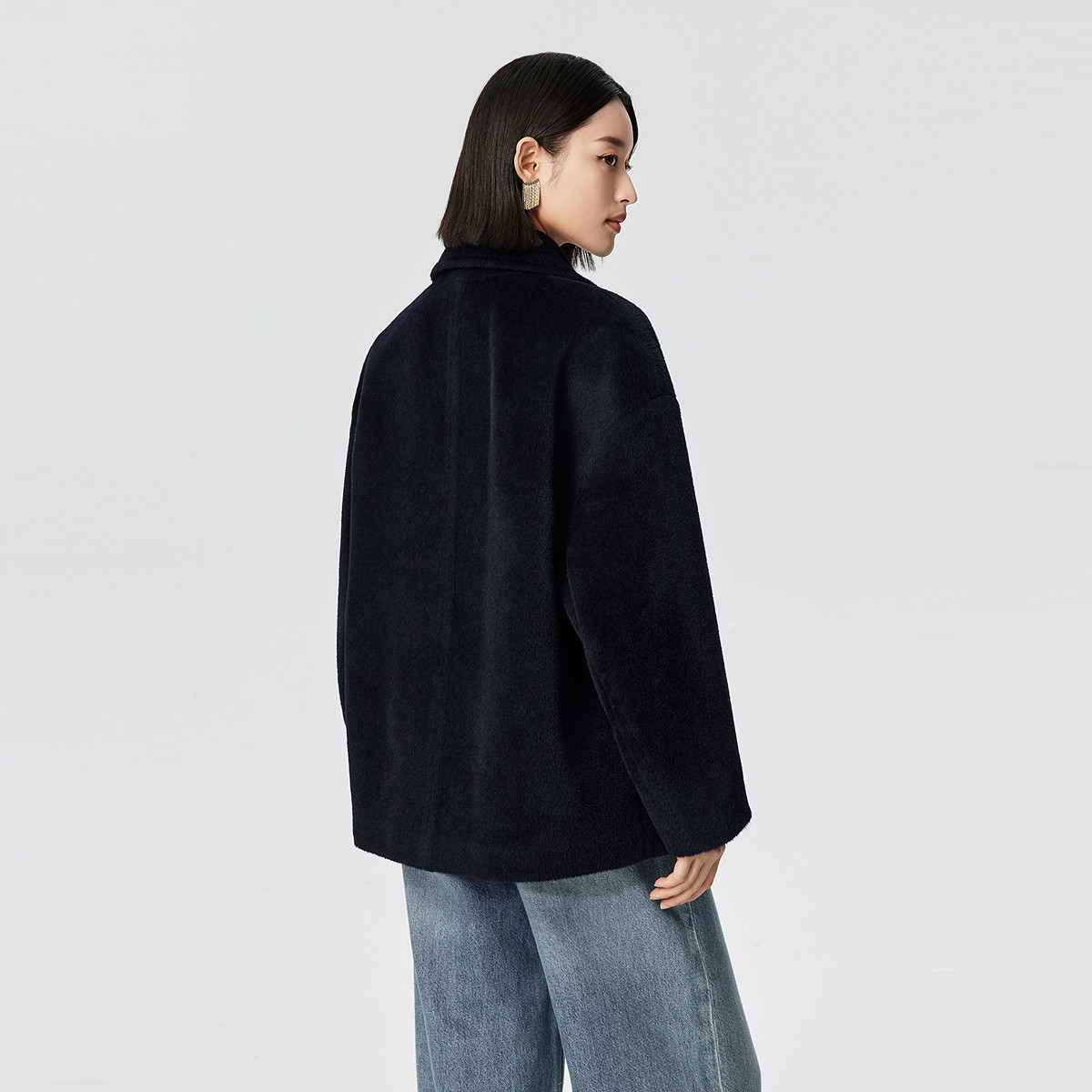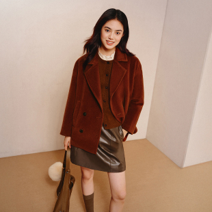 羊驼毛混纺西装 VGRASS25秋冬新款 领5分长毛呢短外套 皇室婴驼