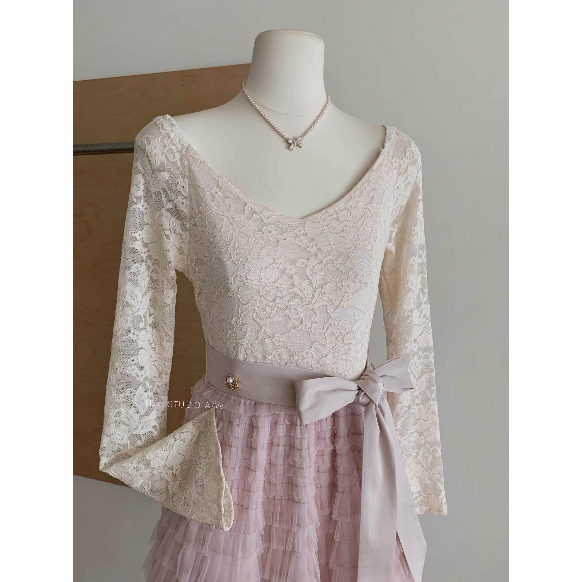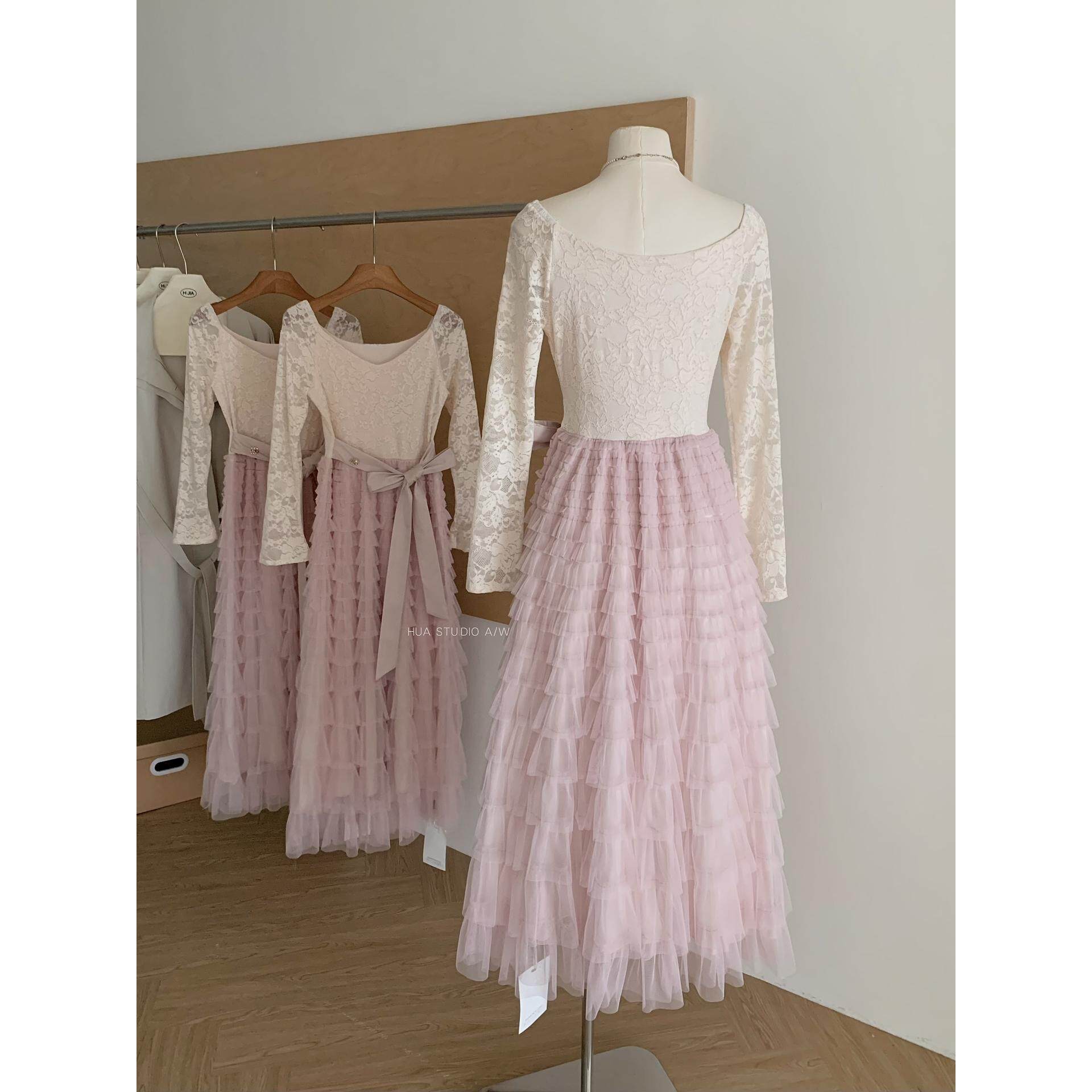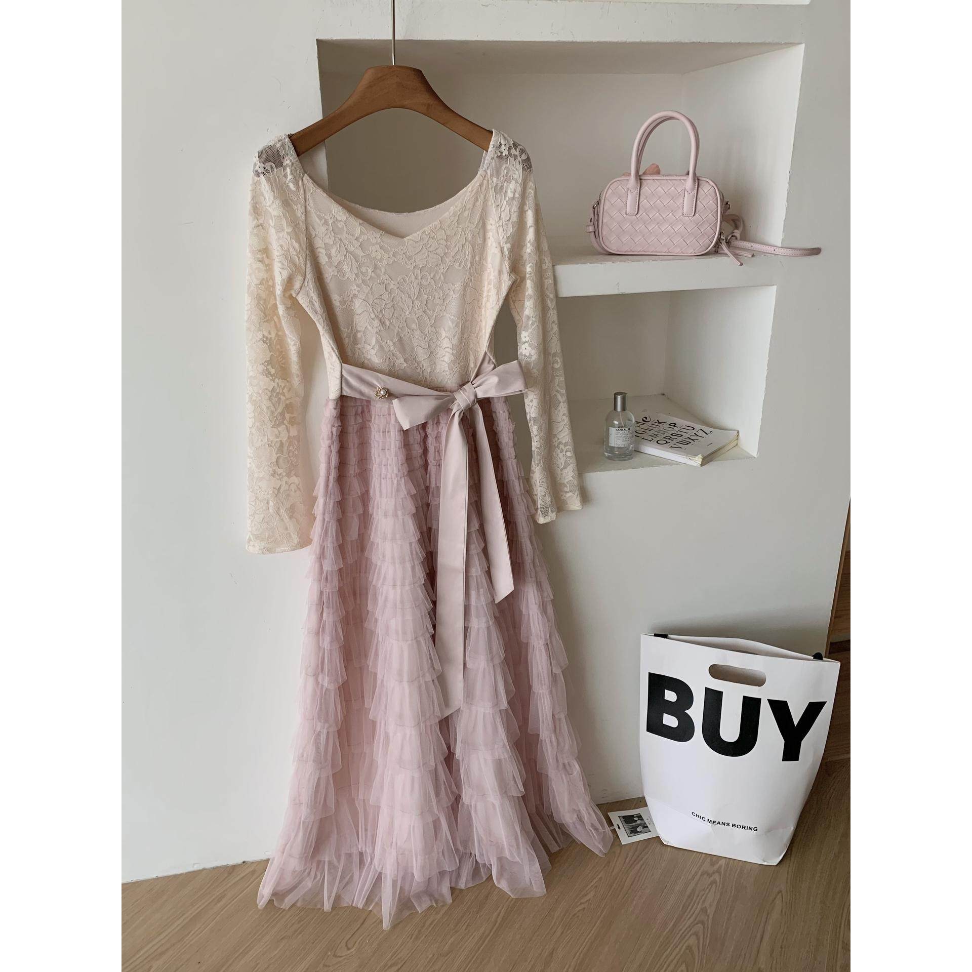蕾丝蓬松蛋糕裙摆连衣裙加绒 复古法式 Catyears猫年 粉荔漫舞