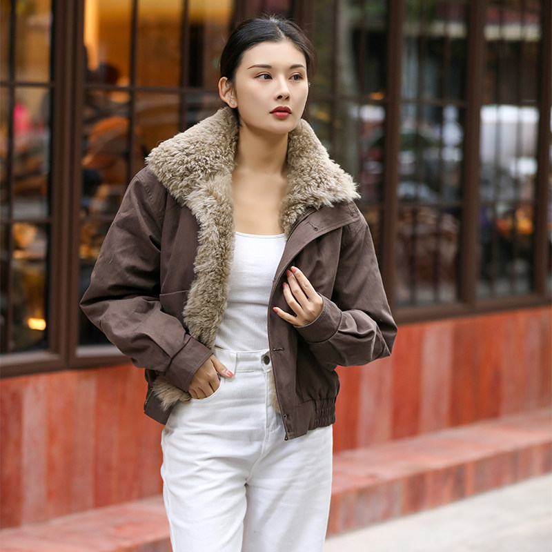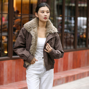 2025冬狐狸毛皮草海军领麂皮夹克女短款 派克服羽绒服高端棕色外套