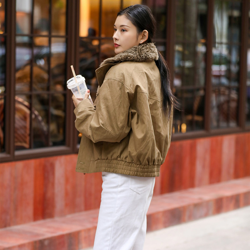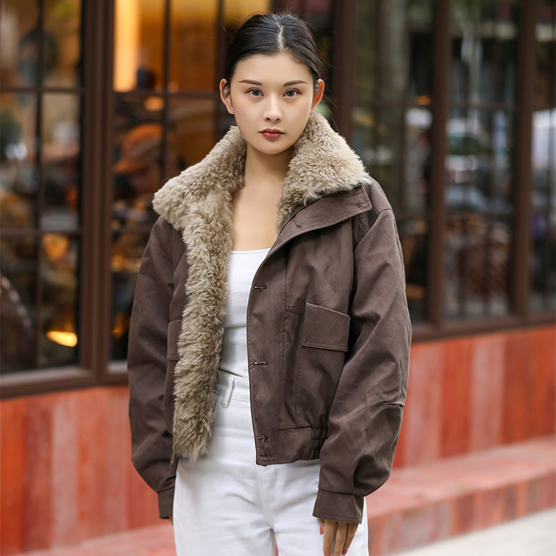 CulturE小众轻奢防貂毛毛绒加厚外套金属设计感宽松纯色短款 皮草