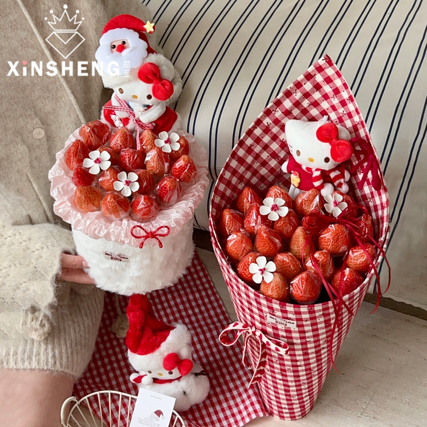 KT草莓饼·花桶 芯苼 精致花艺草莓桶diy花店资材 圣诞节新品
