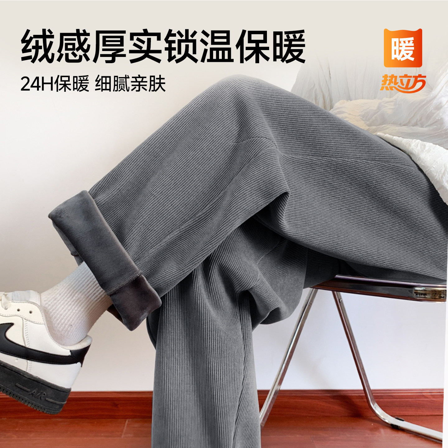 子男款 休闲裤 加绒加厚宽松直筒裤 保暖男士 潮J 男冬季 猫人雪尼尔裤