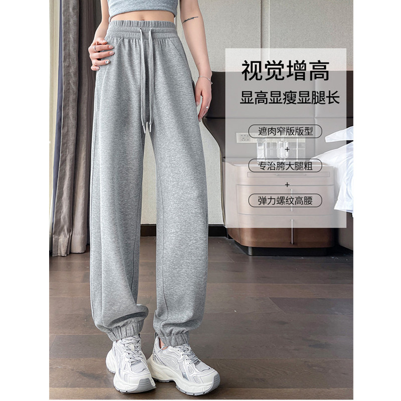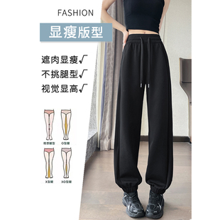 秋冬加绒加厚遮肉高腰束脚哈伦裤 潮 女宽松休闲小个子运动萝卜长裤