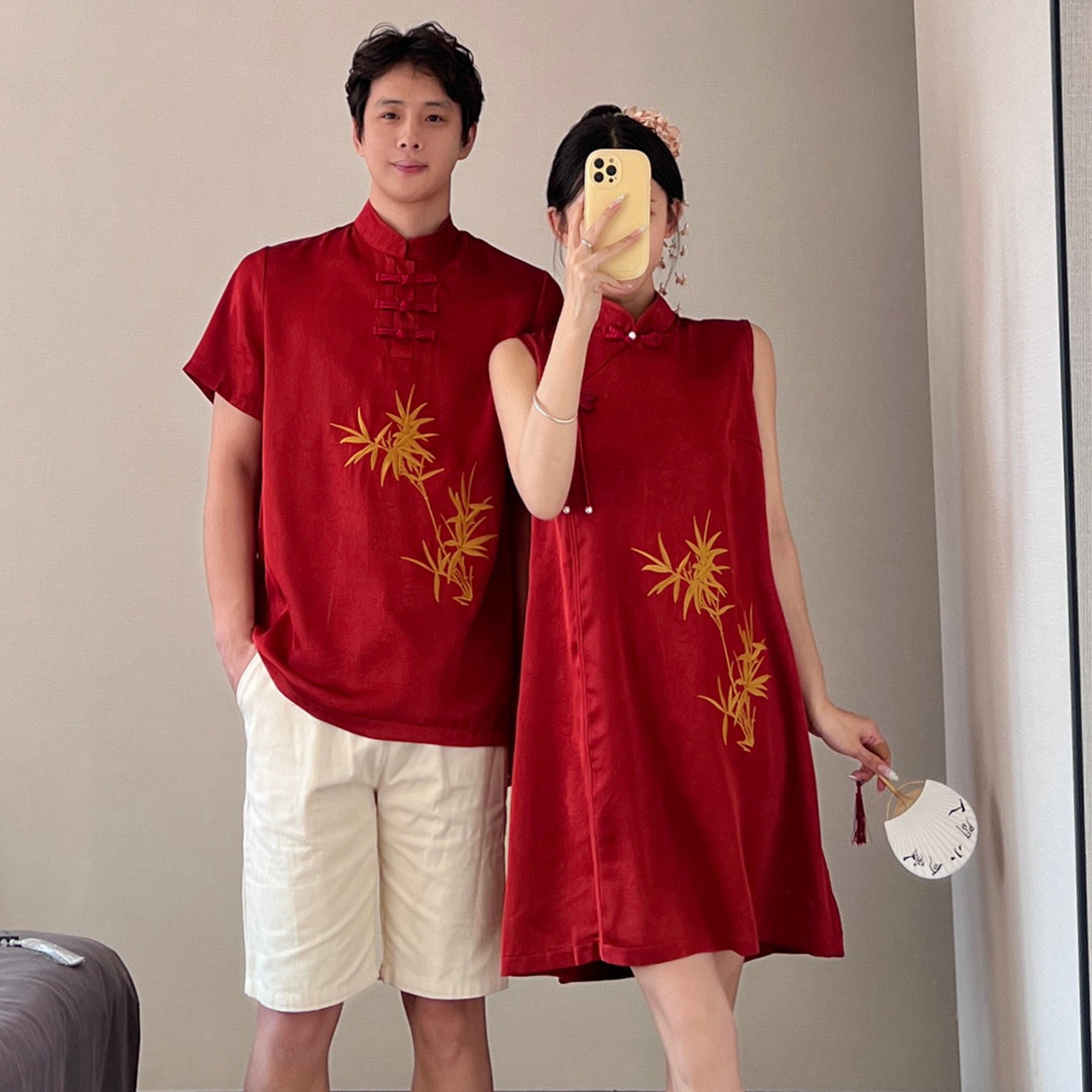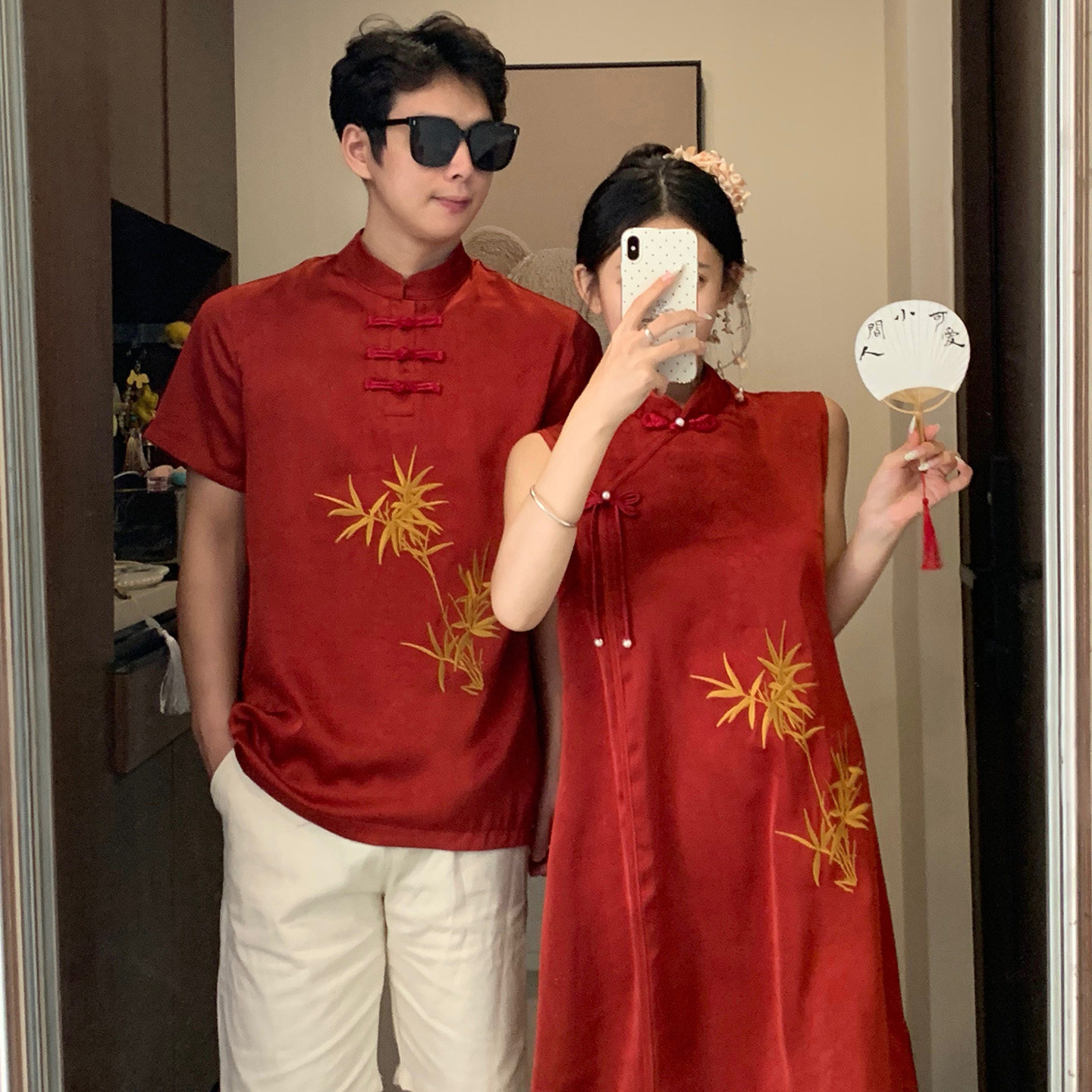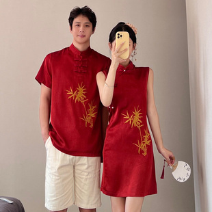 情侣装 大码 夏装 一裙一衣新年唐装 衣服 国风改良旗袍结婚套装 新中式