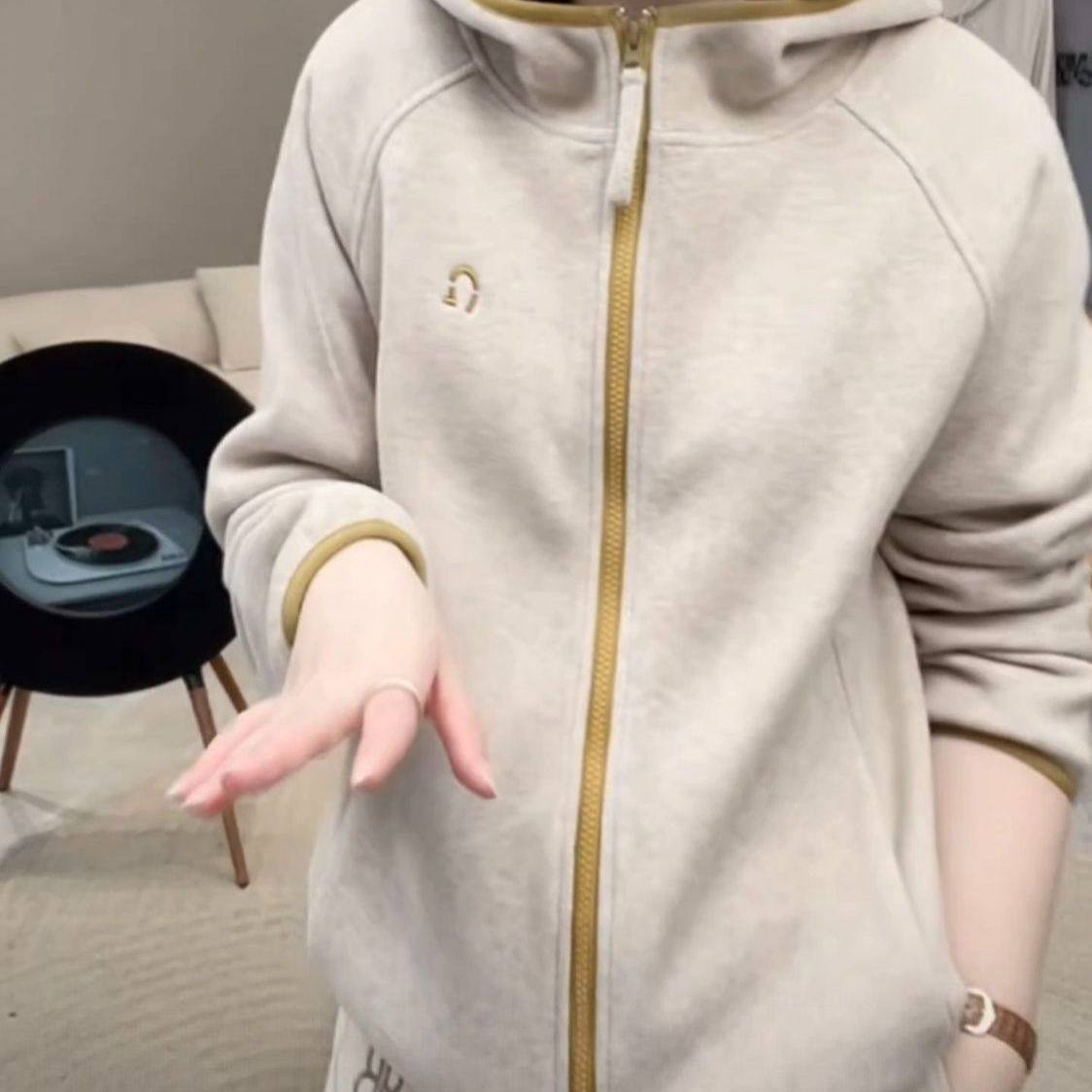 女装 秋冬季 卫衣奥粒绒加厚保暖连帽外套大码 百搭加厚保暖长袖 新款